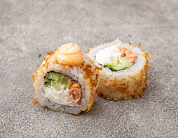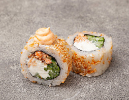 Рис, Нори, Творожный сыр, Жаренный лосось, Огурец, Стружка тунца, Соус спайси, 8 шт