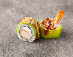 Авокадо, Креветки темпура, Творожный сыр, Соус унаги, 8 шт
