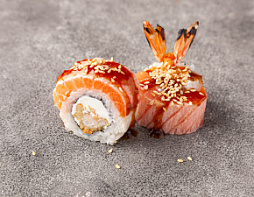 Лосось, Творожный сыр, Креветки темпура, Унаги соус, Кунжут, 8 шт