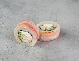 Нори, Рис, Сыр творожный, Огурец, Копченая курица, Бекон