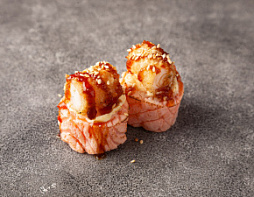 Гребешок, Творожный сыр, Авокадо, Соус чесночный, Унаги соус, Кунжут, 8 шт