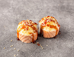 Рис, Нори, Лосось жаренный, Огурец, Сыр творожный, Сырная шапка, 8 шт