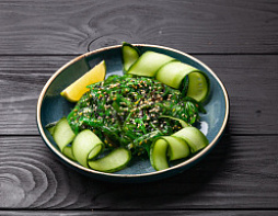 Огурец, Водоросли чукка, Кунжут, Ореховый соус, Лимон