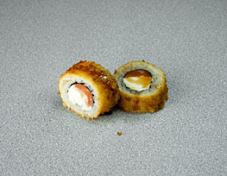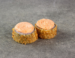 Нори, Рис, Соус лава, Кляр, Сухари панко, Копченый лосось, Сыр творожный, Лук зеленый, 8 шт